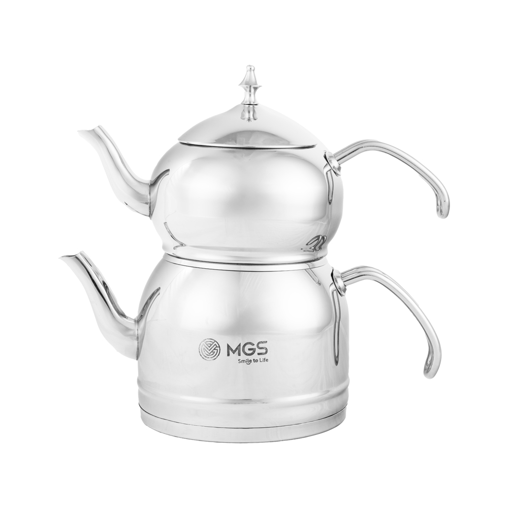 در نگاه نخست طراحی یکپارچه و درخشان این مجموعه، توازن مناسبی میان دوام و زیبایی ایجاد میکند. بدنه استیل قوری با گنجایش ۱.۵ لیتر و کتری ۲.۵ لیتری همراه با دستههای تمام استیل، مقاومت در برابر حرارت و سهولت در جابجایی را تضمین میکند. نشان تجاری MGS با حفظ استانداردهای کیفی بالا، گزینهای کارآمد برای تجربهی چایساز خانگی ارائه میدهد.