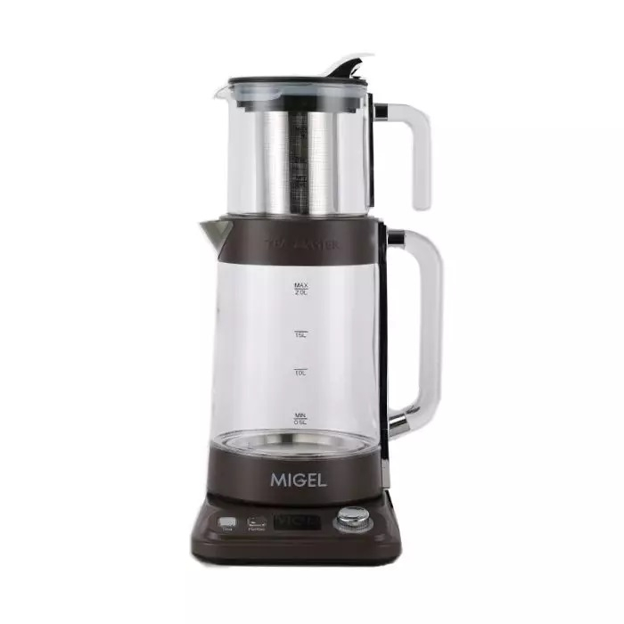 گویی هنر مهندسی و زیباییشناسی در کنار هم گرد آمدهاند تا مدل GTS-290 میگل با بدنه شیشهای شفاف و صفحه گرم نگهدارنده، تجربهای متفاوت از دمآوری چای ارائه دهد. این چایساز با ظرفیت ۲ لیتر برای کتری و ۰.۸ لیتر برای قوری، توان مصرفی ۲۲۰۰ وات و سیم ۱۰۰ سانتیمتری امکان استفاده آسان و مداوم را فراهم میآورد. قرارگیری قوری روی کتری و چراغ نشانگر وضعیت دستگاه از ویژگیهای متمایز این محصول ساخت برند معتبر میگل است.
