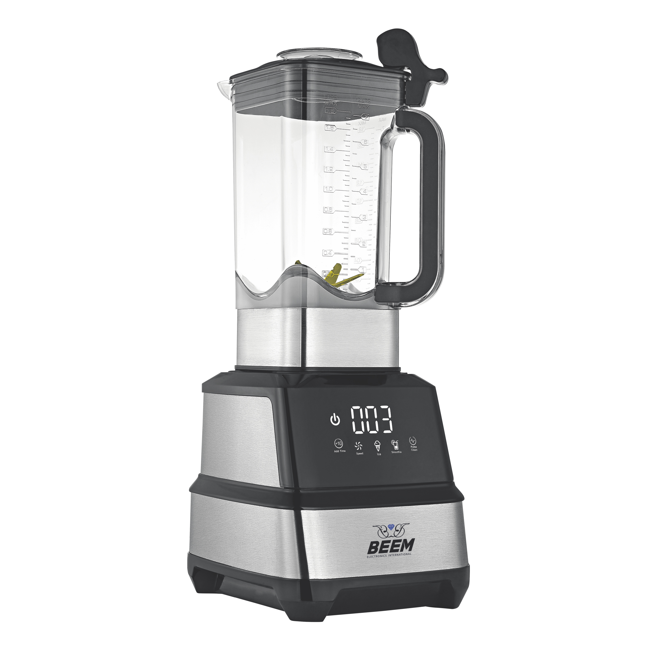 در نگاه اول طراحی شیک و مینیمال دستگاه توجه را جلب میکند که ترکیبی از بدنه استیل و پلاستیک با پارچ شیشهای ۱.۸ لیتری است. این مخلوطکن تککاره بیم ساخت ایران با موتور ۱۶۰۰ واتی، کنترل لمسی و هشت سرعت بهعلاوه عملکرد پالس، سه برنامه ویژه شامل تمیزکننده، اسموتیساز و خردکردن یخ را در اختیار کاربر میگذارد. تیغههای ۶ پره تیتانیومی، قفل ایمنی درپوش و قابلیت شستشوی آسان قطعات در ماشین ظرفشویی از دیگر ویژگیهای کاربردی این مدل است.