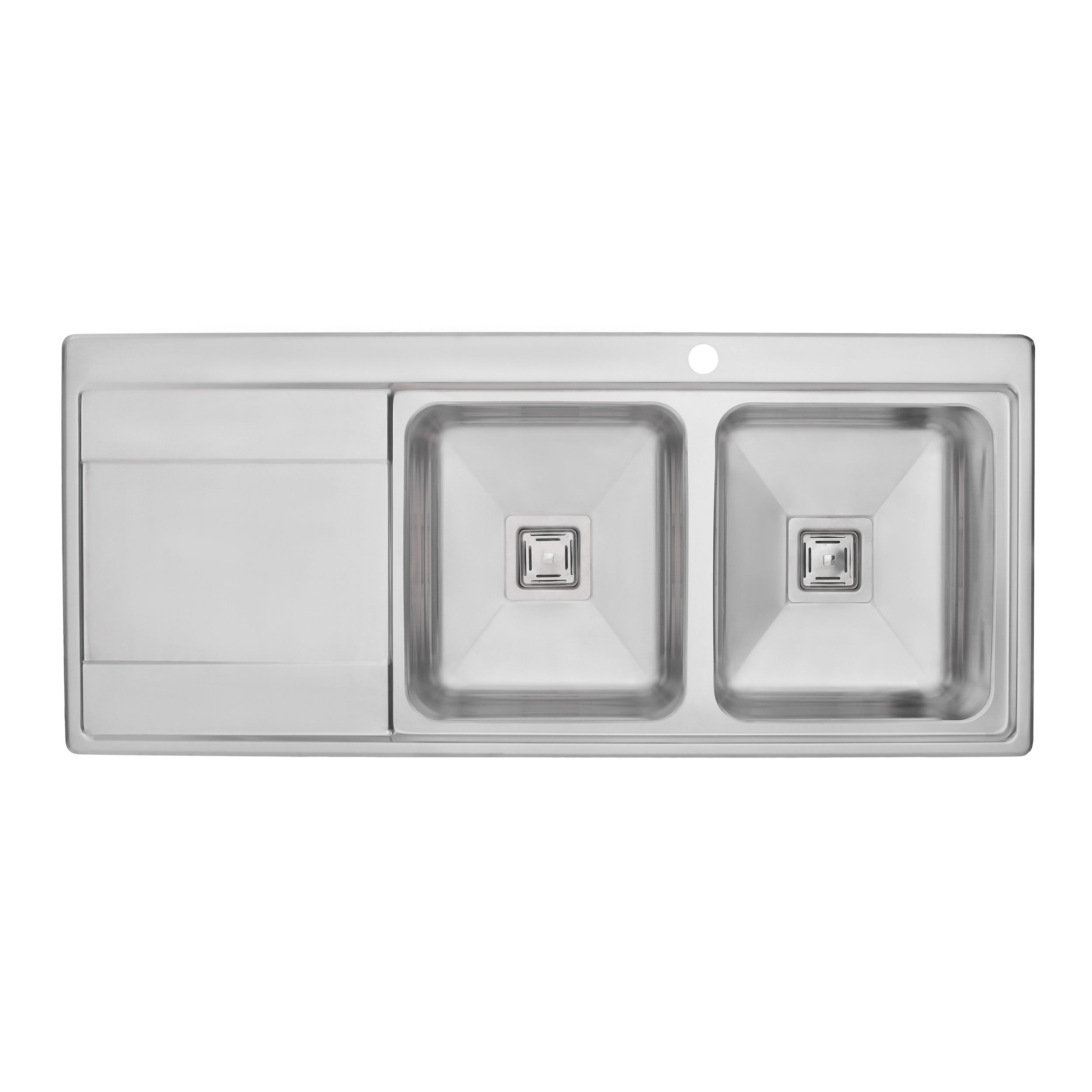 با ترکیب ظرافت و دوام در آشپزخانه، سینک BS845 بیمکث با استنلس استیل ۳۰۴ و ضخامت ورق ۰.۸ میلیمتر در لگن و ۰.۷ میلیمتر در سینی، ضمن مقاومت در برابر خوردگی و خطوخش، دو لگن ۳۹×۳۴ سانتیمتری به عمق ۲۴ سانتیمتر و یک سینی فانتزی را در ابعاد کلی ۱۲۰×۵۲ سانتیمتر در اختیار شما قرار میدهد. نصب توکار این مدل، فضای زیرین کانتر را یکپارچه کرده و محل نصب شیر روی سینی همراه با دو کفشور، سرریز هوشمند و سبد میوه کاربردی، تجربهای حرفهای و منظم در شستوشوی ظروف فراهم میآورد.