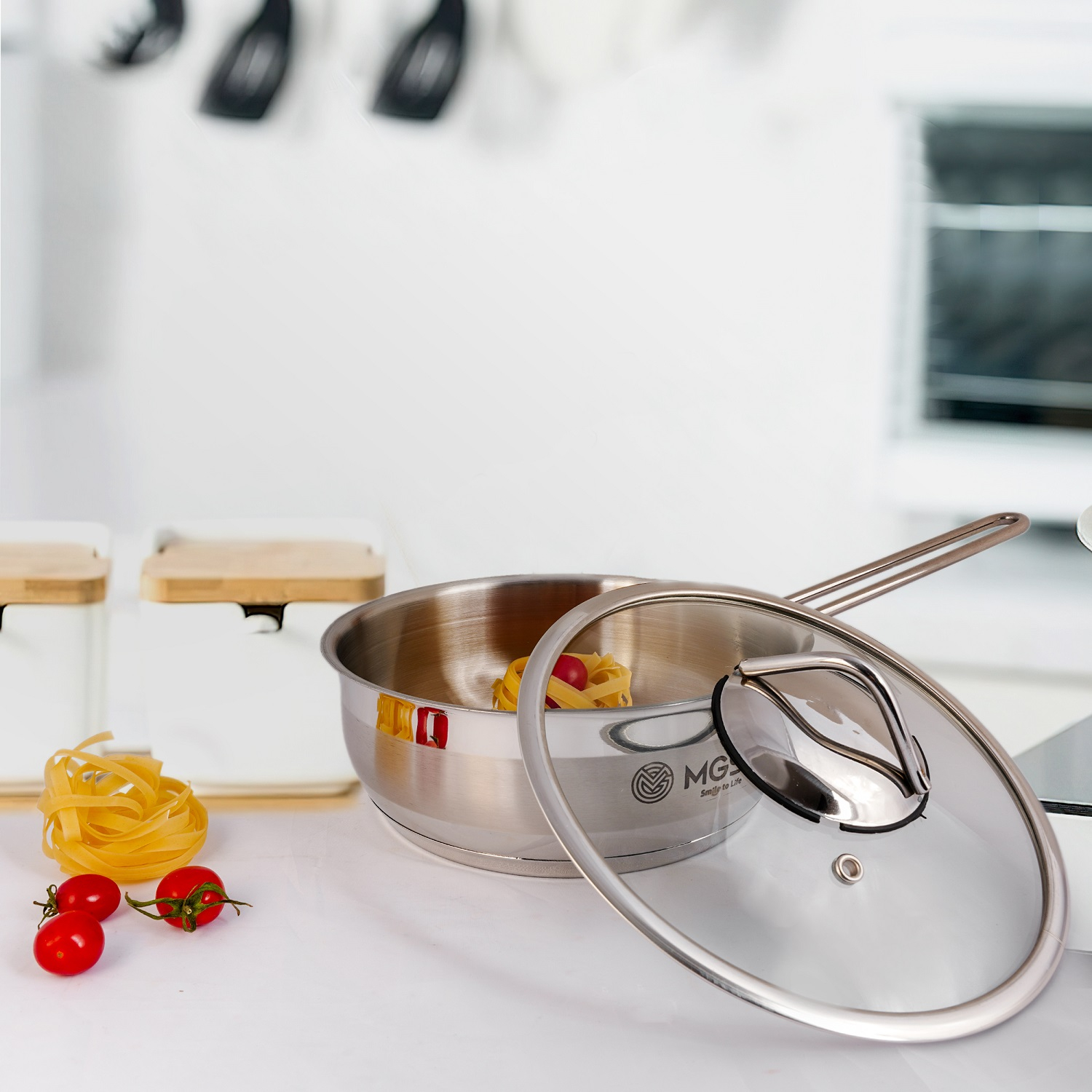 با نگاهی به متریال درجه یک استیل، تابه تکدسته امجیاس مدل PS4114 با قطر ۲۰ سانتیمتر، ترکیبی از دوام بالا و طراحی مینیمال را پیش روی شما میگذارد. ساختار یکپارچه دسته و بدنه این محصول علاوه بر انتقال یکنواخت حرارت، شستوشوی آسان با ماشین ظرفشویی یا دست را ممکن میسازد. در تمام مراحل پختوپز، سطح صیقلی استیل طعم طبیعی مواد را حفظ کرده و ظاهری درخشان و بیتغییر را برای آشپزخانهتان تضمین میکند.