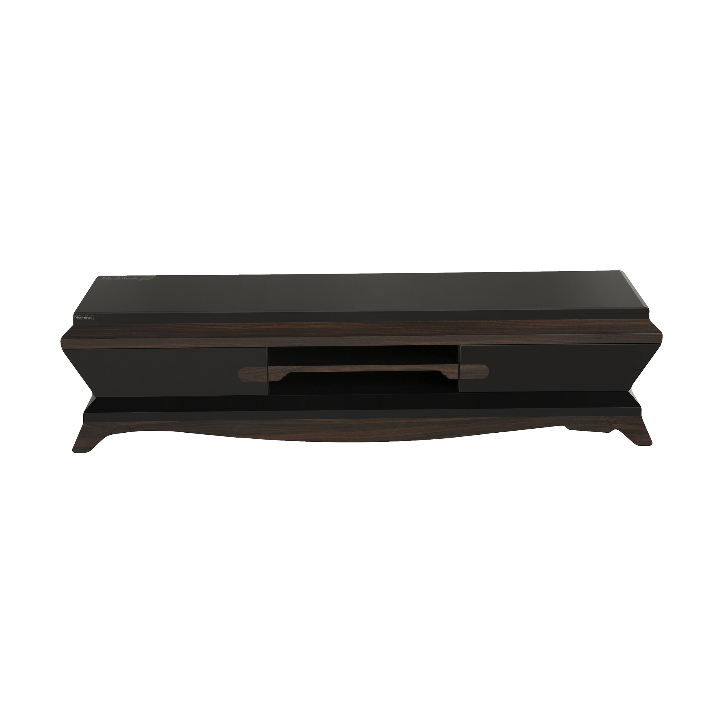 با ترکیبی چشمنواز از مشکی مات و طلایی در پایههای بلند، میز تلویزیون ناژینو مدل 179190 جلوهای مدرن و استوار به فضای نشیمن میبخشد. بدنه ساختهشده از MDF هایگلاس 179190 با روکش براق و لبههای فارسیبرش، ظاهری بینقص و هماهنگ ارائه میدهد؛ دو کشوی مگنتدار و دو طبقهی مفید آن امکان سازماندهی تجهیزات صوتیتصویری را به بهترین شکل فراهم میکند.