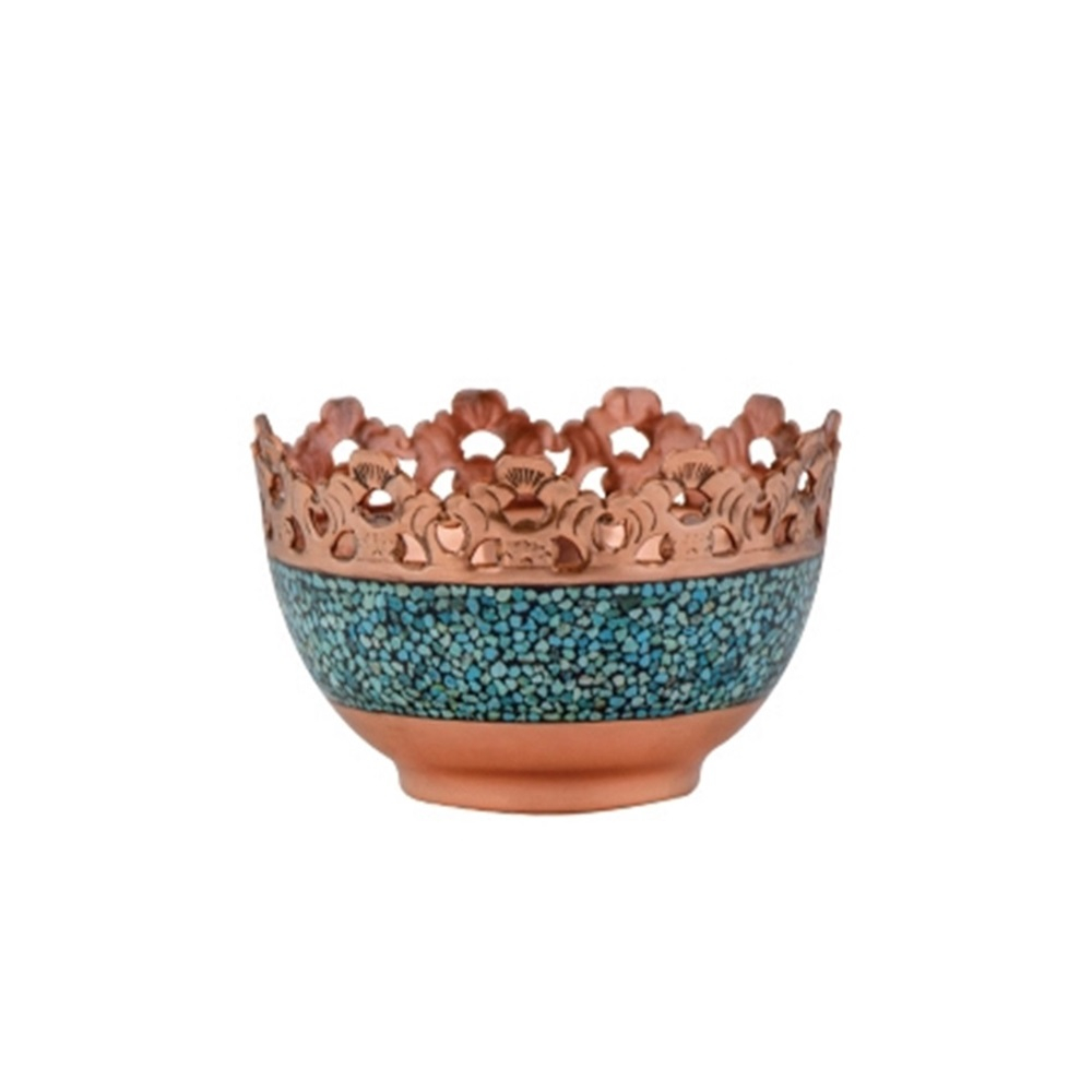 در پاسداشت سنتهای کهن ایرانی، کاسه فیروزهکوبی دستساز آقاجانی با طرح شبکهبری مدل F027 جلوهای چشمنواز از تلفیق مس درونی و نمای فیروزهنشان بر بدنه مسی را به نمایش میگذارد. ظرافت منحصربهفرد نقشها و دقت در اجرای پرداخت فیروزهکوبی، این اثر را برای کاربردهای تزئینی و مصرفی به گزینهای بادوام و شکیل بدل کرده است. هر مرحله از طراحی تا ساخت این کاسه در کارگاه صنایع دستی آقاجانی با تعهد به ارزشهای اصیل هنر ایرانی صورت گرفته است.