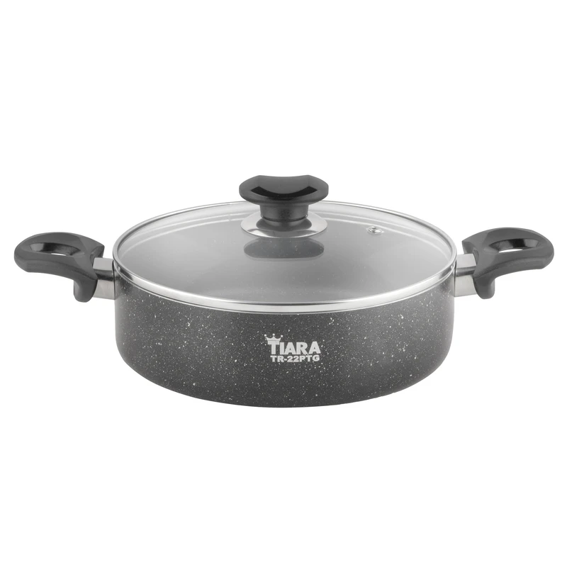تابه گرانیتی تیارا سایز 22 سانتیمتر دو دسته دربدار دو رو رنگ مشکی